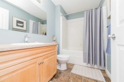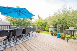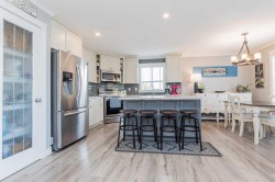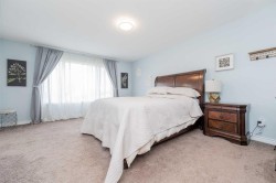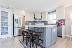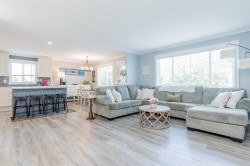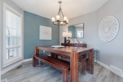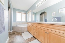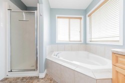 Welcome to this beautifully updated family home, ideally located close to parks, schools, and walking trails. Step inside to a grand entrance with high ceilings and a front sitting area that can double as a formal dining space. The main level features an open floor plan filled with natural light, highlighted by a cozy gas fireplace and large windows overlooking the yard. The renovated kitchen (2018) is a standout, offering an island with eating bar, pantry, soft-close cabinets and drawers, and four stainless steel appliances — including a brand-new stove. A convenient half bath and laundry room off the garage add to the functionality of the main floor. Upstairs, the spacious primary suite includes a huge window, a generous walk-in closet, and a relaxing ensuite with his & hers sinks, a large soaker tub, and a separate shower. Two additional good-sized bedrooms and a full bathroom with a deep tub complete the upper level.The fully finished basement, also renovated in 2018, offers fantastic extra living space with a large family room, two more bedrooms, and a 3-piece bathroom featuring a tiled shower. The backyard is truly stunning — enjoy mature trees, a shed, dog run, afternoon shade, and a large deck built in 2023. Additional recent updates include new shingles (2023) and a new front deck (2024). A well-maintained, move-in-ready home in a great location — this one is a must-see!