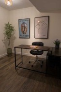 Lower Level Creative Workspace – Available for LeaseVersatile and thoughtfully designed, this 950 sq. ft. lower-level commercial workspace is ideal for entrepreneurs, small teams, or creative professionals seeking a functional yet inspiring environment. The space offers a flexible layout featuring two private offices, a soundproof recording booth, and an open-concept work area or boardroom, allowing for a variety of business uses.Additional features include a private washroom, wet bar with mini fridge, and access to a backyard garden, perfect for client meetings, team collaboration, or small events. Convenient alley parking adds to the practicality of this unique offering.A rare opportunity to lease a one-of-a-kind workspace that seamlessly blends productivity, comfort, and creativity.