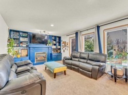 Welcome to this functional two-storey home located in a quiet cul-de-sac. With 4 bedrooms and 4 bathrooms, this home is ideal for families. The main floor features an open-concept layout with updated flooring, a bright kitchen and dining area complete with stainless appliances, and a corner pantry. This space flows nicely into the living room where you will find a cozy gas fireplace surrounded by built in bookshelves — the perfect spot for relaxing or entertaining. The convenience of main floor laundry can also be found on this level adjacent to the garage entry. Upstairs there are 3 generously sized bedrooms, including the primary suite with a walk-in closet and private 3-piece ensuite. The lower level provides a great family rec room, bonus nook possibly for office space, a large 4th bedroom, and another full bathroom — ideal for guests or teens, as well as the bonus of a brand new HWT (Nov 2025). Step outside to enjoy the fully fenced and landscaped yard, complete with underground sprinklers, a handy shed, gas line for your BBQ, and a covered deck for year-round use. There's also ample parking space, including RV parking and an attached double garage. Situated close to parks, walking trails, schools, and playgrounds, this home is a solid choice for family living. Don’t miss this opportunity to get into a great home in a fantastic neighborhood!