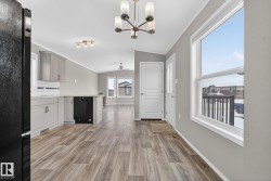 Modern, move-in ready and nicely upgraded, this 2019 home in The Meadows of Morinville offers 941 sq ft of smart, single-level living. The open concept main living area is bright and inviting, with huge front windows, vinyl plank flooring and plenty of room for a full living and dining set. The kitchen features grey shaker cabinets, tile backsplash, black appliances and great counter space, including a peninsula for extra prep and seating. At one end, the spacious primary bedroom includes a walk-in closet and 4-piece ensuite. At the other, a second bedroom, full bath and convenient laundry are perfect for kids, guests or a home office. Outside you’ll find a large deck, parking and a low-maintenance lot. Located in a quiet, well-kept community close to Morinville schools, parks and shopping, this is an ideal option for first-time buyers or downsizers.