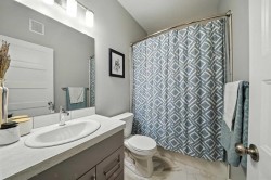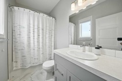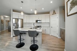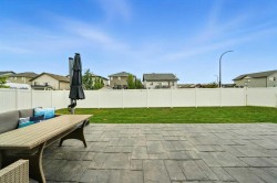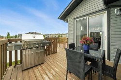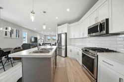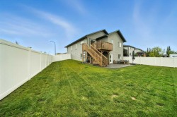 A fully developed walkout on a close! The curb appeal is accented by the front attached garage and covered front veranda. The front entryway greets you with natural light that floods in through multiple windows with a view of the trees and park. The living room has double windows, pot lights on a dimmer switch, laminate flooring and the same view as the front entryway, of the trees & park. White kitchen cabinets are complemented by upgraded stainless steel appliances including an ice maker and a gas stove, crown moldings, full tile decorative backsplash, a grey island with an eating bar and a corner pantry. The eating area has a patio door out to the upper level back deck with a gas line for your bbq. The primary bedroom features a walk in closet and a 4 piece ensuite with a window. There are two additional bedrooms on the main floor and a 4 piece bathroom. The basement was professionally developed by Larkaun Homes in 2024 (except for the one bedroom that was professionally developed in 2021). There is a family room, 2 additional bedrooms (both with dimmer switches) and a 4 piece bathroom with linen storage shelves, a subway tiled tub/shower, all in vinyl plank flooring. The utility room features the washer/dryer and a nice storage space for your convenience. You'll love the walkout from the basement that leads to a large double layer stamped concrete pad that's great for a lounge set and runs under the upper level deck. There is RV parking with the RV gate that matches the vinyl fence (2 gates). A fantastic location across from a park and walking distance to the trail system, school and amenities. The home features AC (2022), a garage de-humidistat & Cat 5/6 in every room.