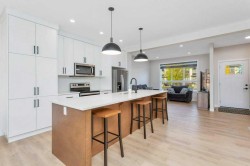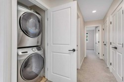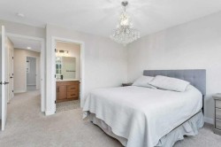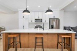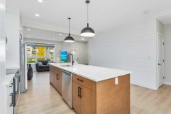Sleek and Stylish - this beautiful 2 storey townhouse is in immaculate condition and there are NO CONDO FEES!! This bright and modern design is thoughtfully laid out and allows natural light to fill the space. The heart of this fine home is the elegant kitchen with a large center island and quartz counter tops, stainless steel appliances, and contemporary 2-toned cabinetry. There is a rear dining space and front living room which all combine for a connected open concept living space. Quality vinyl plank flooring provides a durable and clean surface throughout the main level, and high-end finishes such as herringbone back splash and a shiplap feature wall complete the modern vibe. A convenient 2pce bath is located near the back entrance which provides easy access to the sunny rear deck and fenced yard with storage shed and 2 rear parking spaces. The upper level is perfectly designed with top floor laundry and 3 roomy bedrooms - including the large main bedroom with it's own full ensuite, plus there is an additional full 4pce bath! An unfinished basement with 9' ceilings offers ample storage space and future development potential. Enjoy all of the great outdoor amenities that Evergreen has to offer including beautiful walking and biking paths and parks - maintained by an annual $100 HOA fee. Recreation and shopping are all nearby with this well located home!