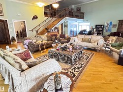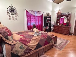 110 acres of tranquility with private lake frontage. Enjoy a 4,300 sq.ft. open-concept home (built 2007) featuring cappuccino maple cabinetry, island with wine rack, gas range, and double wall oven. Primary suite offers a 4-piece spa ensuite with jet tub, body-jet shower, and walk-in closet. Property includes a massive Quonset, large gazebo with fully equipped summer kitchen, and endless trails for quads, horses, snowmobiles, and side-by-sides. Attached shop currently used as living space. This is the ultimate recreational package! Close to the Athabasca River, Jackfish Lake and crown land. Water lines and electrical hookups for campers. Laundry and shower in washhouse.
