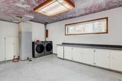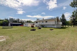 Located in Willowood Estates just minutes from the city, with pavement leading right to the driveway! This 3.53-acre property offers a spacious bi-level home with 5 bedrooms and 2.5 baths, detached double garage, 1,535 sq ft heated shop and generous concrete parking pads. Bright tiled entryway and new hardwood flooring throughout the main level. Kitchen offers plenty of cabinetry and island for additional prep space. Primary bedroom includes his-and-hers closets and 2 pc bath. Two additional bedrooms and 4 pc bath complete the main level. Fully developed basement features two large bedrooms—both with walk-in closets and one with a gas fireplace—plus a secondary living area with potential for a sixth bedroom. There's also a cold storage/canning room, spacious laundry room with cabinetry, and 3 pc bath. Downstairs has been updated with durable vinyl plank flooring, and a newer furnace adds to the home's comfort and efficiency. Zoned CR-4 supports residential use with added flexibility for home-based businesses. The 1,535 sq ft shop is equipped with 14x14 OHD, radiant heat, concrete floors, 220V power, and sink. Outdoor living is enhanced by a large steel aggregate deck at the back of the home, perfect for entertaining or enjoying the peaceful, beautifully maintained yard with mature trees and large garden space. Call today to schedule your private showing!