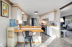 This move-in ready 3-bedroom, 2-bathroom home offers the perfect blend of comfort, privacy, and modern upgrades — all within walking distance to the lake and the amenities of The Village. Step inside to discover a bright, open layout featuring new flooring, including plush carpet and durable vinyl. The upgraded kitchen and bathrooms shine with modern finishes and convenience, complemented by three new appliances (2025). Stay cozy and energy-efficient all year round with a new high-efficiency wood stove (2025) and on-demand hot water, along with updated plumbing for peace of mind. Enjoy outdoor living in the 10 x 14 gazebo, ideal for relaxing or entertaining, all while taking in the private ravine setting—a nature lover's dream. Dock & hoist negotiable. Additional highlights include a new metal roof (2025) for long-term durability and curb appeal. Don't miss this opportunity to own a stylish, upgraded home in a peaceful location just steps the lake and from everything The Village has to offer!