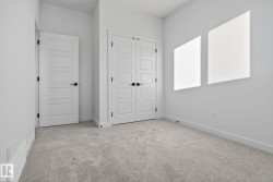 BRAND NEW Townhome with NO CONDO FEES. Open concept floor plan features a living room with electric fireplace complete with an accent wall. Upgraded ceiling height 2-toned kitchen cabinets with quartz countertops and soft-close drawers. A nook overlooking the backyard and a 2-piece powder room complete the main floor. Upstairs, the master bedroom features a 4-piece ensuite and Walk-In Closet. 2 additional good sized bedrooms, a bathroom and laundry room complete this level. SEPARATE SIDE ENTRANCE to the basement plus a DOUBLE DETACHED GARAGE. Modern Details include, MDF shelving throughout, luxury vinyl plank, upgraded backsplash and premium lighting package. This community is conveniently located just 10 minutes away from the City of Edmonton and has direct access to Highway 16A. Close to all amenities.