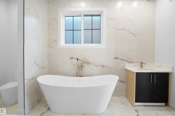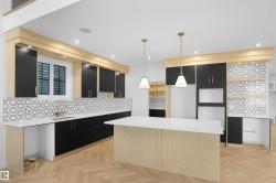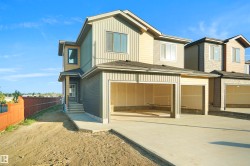 Corner Lot | Triple Car Garage | 2 Private Patios | Bonus Room + Office Space A fully custom and upgraded home in the community of TONEWOOD sounds like a dream! This home boasts over 2600 sq/ft with 4 bedrooms, 3 full baths, bonus room & 9ft ceilings on all three levels. Main floor offers vinyl plank flooring, bedroom/den, family room with 18ft ceiling, fireplace. 2 BIG Kitchen with modern high cabinetry, quartz countertops, island . Spacious dinning area with ample sunlight is perfect for get togethers. The 3 piece bath finishes the main level. Walk up stairs to master bedroom with 5 piece ensuite/spacious walk in closet, 2 bedrooms, 4 piece bath, laundry and bonus room. Public transit to Edmonton, & more than 40 km of trails your dream home home awaits. includes WIRELESS SPEAKERS/ TRIPLE PANE WINDOWS/DECK WITH GAS BBQ HOOKUP