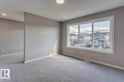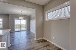 This stunning WALK-OUT home is located in an amenity-rich community, within walking distance of Spruce Grove's new Civic center and quick access to Highway 16. It offers a spacious layout with views overlooking a serene pond- NO neighbors behind you! Featuring a double front attached garage and a 12' x 10' deck. The open concept kitchen, complete with quartz counters, ample cabinetry and overlooks a cozy great room with a sleek 50" linear fireplace. Additional highlights include luxurious primary bedroom with dual vanities and a smart home system for added convenience. Enjoy stylish finishes throughout, including luxury vinyl plank flooring and advanced stain-resistant carpet.