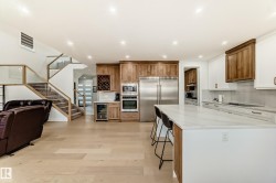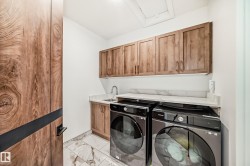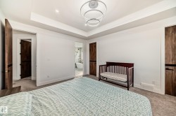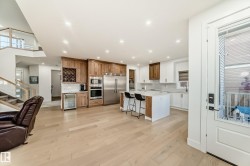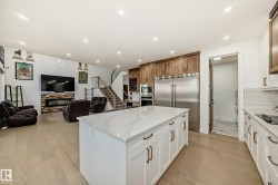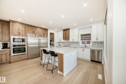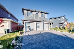 Welcome to this immaculate 2-story home offering almost 2,900 sq. ft. of modern, functional living space. Home features main floor den/ bedroom/ office, 4 spacious bedrooms upstairs and 4 full bathrooms. Upstairs, two bedrooms share a convenient Jack & Jill bath while the primary bedroom is complete with a 5 piece ensuite and 2 walk in closets. The upper laundry room includes water hookups and plenty of storage. The main floor boasts a gourmet chef’s kitchen with stainless steel appliances, massive island, and a separate butler’s kitchen with extra prep space and storage. Enjoy abundant built-in storage throughout, including custom organizers for kids’ coats and gear. The triple-car heated garage offers room for vehicles, tools, and toys. Perfect for families and entertainers alike this home combines luxury, comfort, and functionality in one exceptional package!