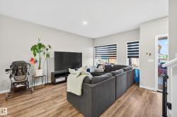 House built by Sterling Homes in 2022, A/C, very well located, close to the future "Energy City Metro Ballpark", and "Greystone Centennial Middle School" 9' Ceiling in Main floor. Lots of natural Lights. Open concept, dining area, L shaped kitchen, Quartz countertop, Silgranit sink with views out the window, soft close cabinet in Kitchen, second floor has an open loft area, laundry room in second floor. Big primary suite with walk-in closet, 4 pi4c4 bathroom and double sinks, shower with glass sliding doors. Garage concrete pad and power, small deck at the back, separate side entrance. 9' high basement and include basement rough-ins for future development, Partially fenced, front and sides of the house landscaped