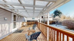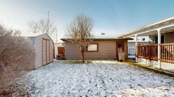 This welcoming single-story home in Stettler, Alberta, offers bright, comfortable living in a friendly residential neighborhood. The living room immediately sets the tone with its large picture window, filling the space with natural light and highlighting the warm wood-look flooring. Its generous size allows for a variety of furniture layouts, making it easy to create a cozy family gathering space or a relaxing place to unwind. The kitchen is designed with classic wood cabinetry, white appliances, and a dedicated dining area for everyday meals or hosting loved ones. Patio doors open directly to the outdoors, where a large covered deck creates the perfect spot for morning coffee and evening barbecues. A practical back entrance sits just off the kitchen and includes front-load laundry for added convenience.Down the hall are three comfortable bedrooms, each offering flexibility for family members, guests, or a home office. The bright bathroom includes a tub/shower combination. Outside, the property continues to impress. The single-car garage has pavement right up to it, offering easy vehicle access and a clean, tidy exterior. The fully fenced backyard is ideal for children, pets, or anyone who enjoys privacy. It features mature trees and shrubs that add shade, color, and charm throughout the seasons. With its single-level layout, outdoor living spaces, and low-maintenance design, this home is an excellent fit for families, retirees, or anyone looking for a simple, comfortable lifestyle in a great community.