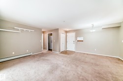 Welcome home to this open and bright RARE 2-bedroom PLUS DEN (3rd Bedroom) and 2 FULL bathrooms condo in Stony Plain! The primary bedroom features a walk-through closet that leads to the three-piece ensuite. The second bedroom on the opposite side of the living space has access to a 4-pc bathroom, ideal for roommates or families. The en-suite laundry room provides additional storage, and the spacious deck faces west for ample evening light. The additional LARGE DEN area can be used for a home office, storage or gaming room! Ideally located with fast access to highway 16A and walking distance to grocery stores, the hospital, restaurants and many other amenities! Must See.