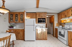 Located on a corner lot in the sought-after community of Meridian Meadows, this well-kept 3 bedroom, 2 bathroom modular home offers 1216 sq/ft of comfortable living. Enjoy morning coffee or evening relaxation on the spacious covered verandah with natural gas BBQ hookup. Pride of ownership shines through—this is an original-owner home with thoughtful upgrades in the last 5 years, including new toilets, fresh sod in the front yard, and a new roof on both the house and garage. The double detached garage is fully insulated and drywalled, providing excellent storage, infloor heat and a separate "man cave". A rare opportunity to enjoy relaxed living in one of the area’s favorite communities.