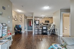 Welcome to this bright and beautiful top floor, 2 bedroom, 2 bathroom unit in the highly desirable "The Vibe" complex! Perfect for first time buyers, downsizers, or savvy investors (rentals allowed). This spacious home features an inviting open concept design, including an efficient kitchen with a large eating bar, ideal for casual dining and entertaining. The main living area is accentuated by laminate flooring and a private balcony, perfect for enjoying your morning coffee or evening relaxation. The generous master bedroom boasts a walk in closet and a full private ensuite, while the second bedroom is conveniently located near the second full bathroom. Located near Highway 1 and plenty of shopping options.