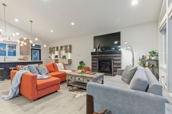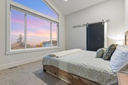 GORGEOUS MODERN basement-entry home featuring 3 bedrooms up PLUS a 1-bedroom DAYLIGHT suite with den! Enjoy a FABULOUS OPEN living space highlighted by a sleek modern kitchen with large island, SS appliances, chic lighting, gas fireplace, vaulted ceilings, and a MASSIVE window + front patio showcasing BREATHTAKING MOUNTAIN & VALLEY VIEWS! The primary suite offers another huge view window, TONS of natural light, a generous W.I.C., and a 4pc ensuite with dual sinks! Downstairs includes a bright 1 bed suite with separate entry and laundry! Additional perks: 20x20 covered vinyl deck, PRIVATE low-maintenance fenced yard, ULTRA-deep garage (perfect for trucks), and side RV parking! This STUNNING home checks every box — view it today and fall in love!
