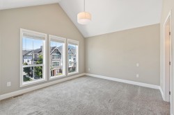 Discover this stunning 4-bed, 3-bath non-strata Row Home in desirable Webster Crossing—offering 1,500+ sq ft of bright, modern living with no strata fees! Steps to Vedder River, Rotary Trail, parks, and schools. Features quartz counters, gas range, S/S appliances, A/C, NG fireplace, large windows with mountain views, and an open floorplan. The vaulted-ceiling primary suite offers a walk-in closet and spa-like ensuite with heated floors. Enjoy a fenced yard, covered patio with BBQ outlet, EV-ready double garage, full driveway, and dog wash station. Close to Garrison Crossing, Cultus Lake, and Hwy 1—this is the lifestyle you’ve been waiting for! No strata, no bylaws, self-managed.