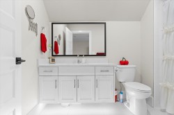 Welcome to Elysian Village! This spacious 3-bedroom rancher with loft is set on one of the largest corner lots in the community. The thoughtfully designed floor plan offers a primary bedroom and den on the main level, plus two additional bedrooms and a generous open loft upstairs. Enjoy high-end finishes throughout, including quartz countertops, a chef’s kitchen with gas range, and built-in cabinets in the laundry room. Relax in your fully fenced yard featuring a covered patio, natural gas BBQ hookup, and hot tub—all with unobstructed views of Mt. Cheam. Additional highlights include air conditioning, a full 5' crawl space for storage, a double garage, and driveway parking for up to eight vehicles. This home combines luxury, comfort, and functionality in a prime setting.