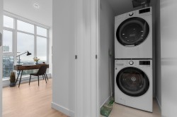 Welcome to this newly completed 2-bed, 1-bath sub-penthouse on the 23rd floor—747 sq. ft. of smart, stylish living with spectacular NE mountain and city views. A rare 140 sq. ft. balcony with natural gas and power extends your lifestyle outdoors. Inside, enjoy a premium kitchen with quartz countertops and Fisher & Paykel integrated appliances, plus sleek laminate flooring throughout. West by Beedie puts you in the heart of Burquitlam, steps to shops, parks, The Vancouver Golf Club, and minutes to SFU. Resort-style amenities include a designer party room, state-of-the-art fitness centre, co-working lounge, luxury guest suite, outdoor BBQ area, and a one-of-a-kind indoor sports court you won’t find anywhere else!