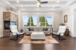 EXECUTIVE HOME 8 Bed/8 Bath at 5,820 sqft! Luxury meets function with every bedroom offering an ensuite. Ideal for multi-generational living with a 2-bed legal suite plus 1 bed in-law suite, can generate up to $4,500/month in mortgage helper income. Soaring 18ft coffered ceilings in the living/dining room, 10ft ceilings on all levels and rich custom millwork & masonry. Chef's dream kitchen with 48" built-in fridge, Wolfe range, walk-in pantry, wok kitchen & wet bar. Low-maintenance mountainside lot with no back lawn to mow, designed for entertaining with covered patio, outdoor kitchen, dining, lounge & TV area. A private bridge leads to the vaulted primary retreat with French doors, mountain views, spa ensuite and walk-in closet. Minutes to Coquitlam Centre, Skytrain, schools and amenities