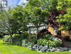 Nestled down a private drive behind an automated gate, this .75 acre remarkable property harmonizes the charm of a countryside retreat with modern comforts, conveniently located near Kelowna’s amenities. The enchanting landscape is unique, surrounded by lush greenery, vibrant flowers, mature trees, and an orchard. At the heart of the property lies an underground saltwater pool with a changing room. For those requiring additional storage or workspace, the property includes a detached 24'x 42' two-car garage and a 30'x40' detached heated workshop with 100 amp service. This substantially renovated home features three spacious bedrooms and two bathrooms, designed with an open-concept layout that maximizes space and natural light. The kitchen boasts an eat-at island, stainless steel appliances, and a gas range. The adjacent dining area has oversized windows that seamlessly connect indoor and outdoor living, inviting you to step out onto the partially covered patio (wired for hot tub), which is ideal for al fresco dining or simply enjoying the serene surroundings. The primary bedroom, located on a private side of the home, provides a luxurious retreat complete with a dressing room and a bright ensuite bathroom. An additional bedroom and bathroom complete the main floor. Venture down to the basement, which has a separate entrance and includes a cozy family room, an extra bedroom with a walk-in closet, a dedicated laundry area, and a flexible space perfect for a gym or play area. (id:27)