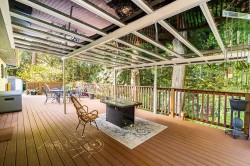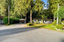 Looking for ultimate privacy in Brookswood for under a million? This charming 2-bed, 2-bath home is nestled among mature evergreens and backs onto a greenbelt with a peaceful creek. Features include hardwood floors, an updated kitchen, skylights, new hot water tank, new furnace, metal roof, fresh exterior paint, a redone crawl space, detached carport, and lots of parking. Enjoy a large west-facing deck—newly rebuilt along with the retaining wall—perfect for relaxing with full afternoon sun. A rare, private retreat close to all amenities.