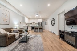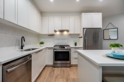 Stylish and spacious GREAT ROOM plan with a VIEW OF THE COURTYARD—could easily be converted to 3 bedrooms! Features include STAINLESS STEEL appliances, QUARTZ countertops, sleek kitchen cabinetry, and a large in-suite storage room. Comes with 2 PARKING STALLS and is just a short walk to the FUTURE SKYTRAIN—buy now, profit later! Enjoy easy access to Hwy 1, Alex Fraser Bridge & the US border. Rentals allowed, no age restrictions, 2 PETS ANY SIZE—families welcome!