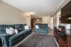 Welcome to Monterey Grande! This rarely available TOP FLOOR 2-bed, 2-bath condo offers 1,030 sq ft of spacious living in a QUIET location. You will be greeted with an open floor plan featuring UPDATED laminate flooring & crown moldings with a large dining area open to the living room featuring a cozy gas fireplace! The oversized primary bedroom boasts double closets w/ensuite + generous second bedroom, family bathroom & laundry room with SXS washer & dryer! Enjoy your morning coffee with mountain views on your large covered deck! BONUS storage locker conveniently located right beside your unit + 1 underground secure parking spot! The well-managed building features an amenity room, bike storage & workshop. Located - close to shopping, restaurants, an off-leash dog park & future Skytrain!