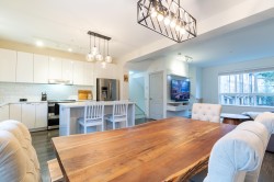 Forget the narrow floor plans that come with tandem garages - be amazed by the the extra wide living area that a SIDE BY SIDE traditional GARAGE allows. 9' ceilings. FAMILIES/PET OWNERS- rarely available ALMOST 300 ft2 yard that is adjacent to the huge playground. This well maintained 3 bedrooms PLUS DEN/OFFICE home features a large Master bedroom ensuite/oversize shower. POWDER ROOM ON THE MAIN. BONUS FEATURES - new back splash, new tile floors, new bath vanity, new blinds, new carpet on stairs, new lighting, built in entertainment console, new paint and popcorn ceiling removal, EPOXY garage floor. RESORT STYLE AMENITIES - outdoor pool, hot tub, gym, Theatre Room, indoor ball hockey arena. Kids can walk to Bulpitt Elem w/o leaving the prop. This is THE ONE. OPEN HOUSE SAT DEC 20 2-4pm