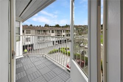A great find only steps to the beach. This is a super clean and nicely updated condo in Seaside Place – directly across the road from Departure Bay beach. A brand new custom kitchen by Comsense Kitchens really makes this unit stand out. The design expands the kitchen making it much more functional and semi open-concept. The high quality of the cabinets (all wood) with quartz counters plus an updated bathroom set this home apart. The flooring has been updated recently, a fresh coat of paint and a new hot water tank all mean you can just move right in and enjoy life by the beach. There is a convenient parking stall close to the entry and a storage locker for those extras. Good reserve fund, reasonable strata fee, non-smoking building, cats are allowed and Drip coffee and food trucks only a 5 min walk away.