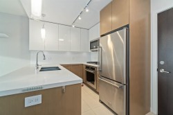 Welcome to Parkside in the highly sought-after Victoria Hill community. This shouth-facing 1 Bd + Den features an efficient open-concept layout with 9 ft ceilings, a modern kitchen with quartz countertops, SS appliances, a gas cooktop, and a large balcony w/ floor-to-ceiling windows that fill the entire home with natural light. Enjoy unobstructed views of the Fraser River, Queens Park & Woodlands memorial Garden. The bedroom offers access to the balcony and a large walk-in closet. Only 5 min to transit, the Quay, parks & Aquatic & Community Centre. Low strata fees include access to resort-style amenities: a hot tub, outdoor pool, fully equipped gym & yoga studio, theatre room, party room guest suites & on-site concierge. Rentals and pets allowed. Includes 1 parking and 1 locker.