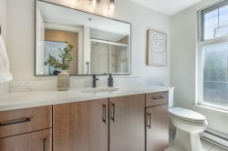 Stylish, spacious & steps from everything! This bright 2 bedroom, 2 bathroom corner unit shines with recent renos to the kitchen & bathrooms. New quartz counters, backsplash, sinks, lighting, paint & hardware. Sleek new appliances (stove/micro 2024, fridge/W&D 2025). Bedrooms are thoughtfully placed on opposite sides for privacy. Screened windows/balcony door for comfort. Brand new balcony membrane with pro-active Strata. Leave the car in one of your 2 side-by-side parking stalls. SkyTrain is just a 3-minute walk & the West Coast Express gets you to DT Vancouver only in 25 min. Stroll to Rocky Point Park, Shoreline Trail, Brewer’s Row, shops & dining. Amenities include a gym, event space & playground. Urban convenience meets Port Moody’s vibrant outdoor lifestyle!