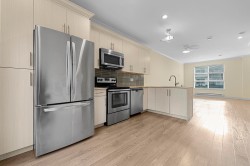 Explore this delightful 10-year-old townhouse, tucked away in a peaceful strata community. Offering 3 bedrooms, 2.5 bathrooms, and a well-designed layout, it's ideal for families or investors. Highlights include elegant laminate flooring, 9-foot ceilings on the second floor, a sleek modern kitchen with stainless steel appliances and quartz countertops, plus a bonus storage area beneath the stairs. Additional features include a balcony, backyard, air conditioning, and a tandem garage equipped with a 240V EV charger. Conveniently located near Odlin Park and top-rated schools in a welcoming neighborhood, this north-south-facing home promises a tranquil and convenient lifestyle. Open house 12-1:30pm Dec 21