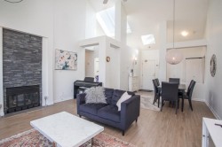 RARE! Bright and spacious TOP-FLOOR 2 bed, 2 bath home at THE GABLES with over 1100 sq ft of well-planned living. SOARING ROOFLINES and SKYLIGHTS fill the space with natural light, while the smart layout separates bedrooms on opposite sides for privacy. Features include updated flooring, a large kitchen with stainless steel appliances, cozy gas fireplace, in-suite laundry, and TWO OVERSIZED BALCONIES for outdoor enjoyment. The building has been fully updated with hardi-board siding, new windows, roofs, and balconies for lasting peace of mind. COMES WITH TWO SIDE-BY-SIDE PARKING STALLS and a large storage locker.. Conveniently located near Minoru Park, Richmond Centre, recreation, dining, schools, and transit. A rare top-floor gem that’s move-in ready. Pets not allowed.