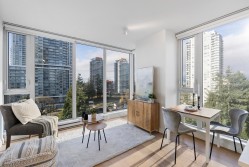 Soak in sweeping 180° unobstructed views from this modern 2-bed + den corner home in the heart of Surrey City Centre. Smart design shines throughout—both bedrooms feature custom Murphy beds to maximize space, while the den includes its own closet, making it a true third-room option. Large windows flood the 750 sq.ft. layout with natural light, creating an airy, elevated feel. Just six years young, this home offers easy access to Holland Park, Surrey Central SkyTrain, Central City’s shops and services. A vibrant, walkable lifestyle with everything at your doorstep.