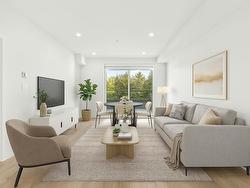 Welcome to Odyssey by the award-winning Forge Properties! This stunning 2-bedroom home features an open-concept layout with full-sized stainless steel appliances, sleek black matte plumbing fixtures, and elegant white quartz countertops complemented by a white tile backsplash. Enjoy the privacy of your own balcony and the warmth of wide-plank wood-grain laminate flooring. Additional highlights include a Whirlpool washer & dryer, rough-in for air conditioning, and a designated parking spot with a storage locker. Residents have access to a state-of-the-art Health & Fitness Centre with a sauna and fully equipped lounges. Ideally situated just off King George Blvd & 152nd St, this home offers convenience with nearby amenities, transit, highways, parks, schools, and a short drive to the beach!
