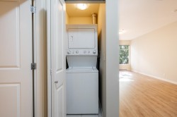 Located in the popular D'Cor community of Surrey City Centre. This Spacious One bedroom, one bathroom condominium is move in ready. Freshly updated with new wide plank laminate flooring in the living and dining areas and a new coat of paint. The Kitchen features dark wood grain cabinets, black appliances, granite counter top, tile backsplash and flooring. Situated on the second floor and on the quiet side of the building with dual-access balcony. 1 parking and 1 locker. Pet-friendly (One cat or one small dog permitted - maximum 20 kgs). The Building offers Secure Gated underground parking, onsite amenity and fitness rooms. Just a short stroll to SFU, KPU, Surrey Central Skytrain, and all the shops and restaurants of Central City Mall. Perfect for first time buyers, investors or students.