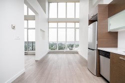 **MASSIVE 16 FT Ceilings, bet you've never seen that before*25th FLOOR WEST FACING PENTHOUSE** Absolutely STUNNING Unobstructed 180° views of the Fraser River, North Shore Mountains & City VIEWS** NEW paint, fridge, Real Wood floors, baseboards & dishwasher. 1 bedroom + DEN & 1 bathroom. OPEN concept Living/Dining & a good size kitchen with QUARTZ countertops & Stainless Steel Appliances, floor to ceiling windows throughout. Includes 1 SECURED parking stall, In-suite Laundry & storage locker. Directly across the street from Gateway SKYTRAIN station, walking distance to SFU, City Hall, Surrey Central Shopping Centre & close to all major transportation routes. RENTALS ALLOWED. Strata fee covers Gardening, water, sewer, GYM, Garbage pickup, HEATING, Management & insurance. Call for a viewing.