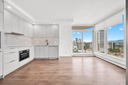 Experience elevated living in this modern 2-bedroom, 2-bathroom condo at Georgetown One by Anthem, built in 2022. Located on the 28th floor, this home offers stunning northwest views of the city and mountains from a large private balcony. The open-concept kitchen features a sleek L-shaped design with premium Bosch and Blomberg appliances. Smart layout with bedrooms on opposite sides for enhanced privacy. Enjoy unbeatable access to Surrey City Centre amenities—just steps to shopping, dining, SFU, KPU, and the SkyTrain. Residents have access to premium amenities including a lounge, outdoor theatre, co-working and study areas, fitness centre, yoga studio, and a pet park. Pets and rentals welcome. Perfect for urban living or investment!