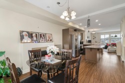 Augusta Walk at the top of Provinceton!! Bright & spacious 1,340 sqft townhome has 3 bedroom & 2 bathrooms up plus a powder room on the main floor. Fairly new paint & flooring, hot water tank (2022). Home features wide plank dark laminate flooring, granite countertops, stainless steel appliances, 9ft ceilings, built in vacuum plus more. Bright wide-open concept on main floor with large family room. Great location in Provinceton with easy access to highway and close to schools. Walking distance to proposed new skytrain coming down Fraser Hwy!!