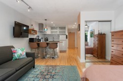 A fantastic opportunity for first-time buyers or investors! This fully renovated, nearly 500 sq ft studio at Rosemont Manor features refinished hardwood floors, a cosy interior, + a newly rebuilt south-facing 120+ sqft patio overlooking a quiet greenbelt. Whether you’re cooking with garden views, sipping coffee in the sun, or gardening, this outdoor oasis sets the suite apart. Steps from Main Street’s best cafes, restaurants, parks, and the future Broadway line. Excellent rental incomeLeasehold until 2073. TRADITIONAL FINANCING AVAILABLE. Monthly fee incl: H/W, TAXES, cable and Telus high-speed internet! Mobi Bike Share is located across the street. Only a block away from trendy Main St, with some of Vancouver's best restaurants & cafes. OPEN HOUSE: Saturday, December 20th, 3- 4 pm