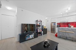 Bright, beautiful, and updated 1 bedroom + den + solarium at SPECTRUM 1, spanning almost 700 sq.ft. with gorgeous city views! This open-concept layout feels spacious and functional — perfect for investors, first-time home buyers, or downsizers. Recent updates include: brand new fridge, stovetop, hood fan, oven, new flooring, and a fresh coat of paint throughout. Spectrum offers outstanding amenities including an indoor pool, fitness centre, and residents lounge. The large living/dining area that allows for multiple furniture configurations, a bright solarium or den ideal for working from home, plus a generous flex/storage room that can serve as additional office space if needed. Situated in an unbeatable location, you're only steps away from Costco, T&T, Rogers Arena, and much more!