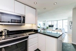 Experience luxury downtown living in this remarkable 2 bedrooms furnished condo rental - a corner unit that features sweeping, 180 degree views from East to West. Lounge on your 2 private balconies while watching the sun set over the surrounding cityscape. Inside, the kitchen is equipped with premium stainless steel appliances and all the necessary utensils. It comes with a plethora of storage in the upscale cabinetry as well as a separate floor to ceiling pantry. The expansive granite counters are perfect for cooking large meals and the breakfast bar is ideal for entertaining. Into the living area, relax on the comfortable couch with chaise lounge end, ideal for stretching out on in front of the flat screen TV.