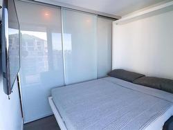 Luxurious & Bright Studio with Stunning Views. Experience modern elegance in this beautifully designed studio apartment, offering a bright, open-concept layout perfect for work or relaxation. Floor-to-ceiling triple-glazed windows provide breathtaking water and city views, enhanced by custom pull-down blinds for privacy. Step onto your spacious private patio, ideal for entertaining or enjoying a peaceful morning coffee. Inside, the versatile living area features a sleek pull-down bed, maximizing space without compromising comfort. The spa-inspired bathroom boasts heated floors, a full soaking tub, and a glass-enclosed rain shower, while the gourmet kitchen is equipped with high-end appliances and sleek cabinetry. A perfect blend of luxury, functionality, and unbeatable views—your dream