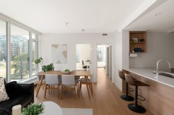 Discover elevated living in this refined 2-bedroom, 2-bathroom suite at Dockside Green by BOSA, built in 2023 and under full warranty. This southeast-facing corner home offers captivating views from its spacious balcony. Inside, a chef’s kitchen showcases a quartz peninsula with seating for four, a gas range, eye-catching backsplash, Stosa Italian cabinetry, and ample storage. The primary bedroom features a walk-in closet and spa-like ensuite with a no-step shower. The second bathroom includes a deep soaker tub for added comfort. Exceptional building amenities include a top-tier fitness center, a rooftop patio with three BBQ areas and a gas fireplace, a pet wash station, secure bike storage, and a welcoming social lounge. Located in Vic-West, steps from the Galloping Goose Trail and only minutes from Marlena, Boom and Batten, the Songhees Walkway, and downtown’s top destinations. One parking space and storage locker included. Pet-friendly with allowance for two dogs of any size.