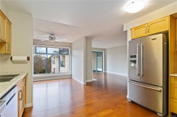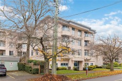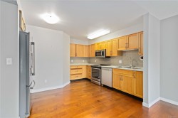 This bright top floor one bedroom one bathroom condo offers an ideal opportunity to live steps from Cook Street Village in one of Victoria’s most walkable neighbourhoods. The home has been carefully updated with hardwood floors, modern paint and an inviting kitchen that features custom cabinetry, stainless steel appliances and a cozy eating nook with treed views. The generous living and dining area is anchored by a gas fireplace that provides year round comfort and is included in the strata fees. The spacious bedroom connects conveniently to the full bathroom and the home includes in suite laundry for everyday ease. Ample storage is found throughout the unit along with a separate storage locker. Located in a quiet 55 plus building that allows pets and is professionally managed, this residence offers quick access to local shops, Beacon Hill Park and the waterfront. An excellent chance to enjoy a well cared for home in a highly desirable setting.
