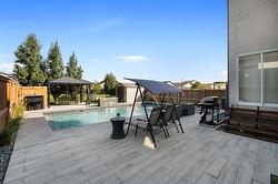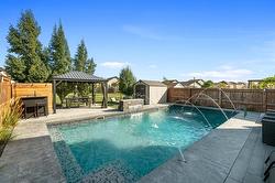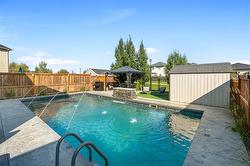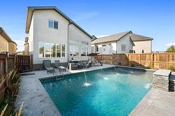 OFFERS AS RECEIVED.Welcome to this beautiful 4-bedroom, 2.5-bath home offering 2,000 sq ft of thoughtfully designed living space.The unique two-level split layout offers the perfect balance of openness & privacy. The main floor boasts a spacious great room with a double sided fireplace, formal dining room, a large eat-in kitchen withpantry & patio doors that lead to your backyard retreat. Whether you're seeking peaceful moments or lively gatherings, this backyard was designed to impress — with a heated saltwater pool (2021), low-maintenance landscaping and an atmosphere that makes it the place everyone wants to be. Inside, you’ll find 4 generous bedrooms, including one on the main level, ideal for guests or a home office. The primary suite w' 4 pc ensuite & walk in closet sits privately on its own level & just a few steps up are 2 more bedrooms & a full bath, ideal for family or guests.Downstairs, the finished basement offers a huge rec room, perfect for movie nights, a home gym, or kids' play zone.From the flexible layout to the show-stopping outdoor space, this home delivers the lifestyle you've been waiting for.