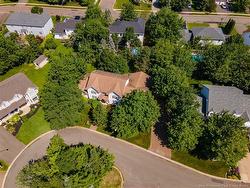 Stately Family Home with In-Law Suite in Moncton North. Welcome to this impressive 2-storey home on a double lot in a quiet Moncton North cul-de-sac. Perfect for families, with the bonus of an income-generating in-law suite: main level, no stairs, private back deck. Inside, enjoy hardwood floors, central air, and a functional layout. The kitchen features built-in appliances, a center island, and walk-in pantry, opening to a sunny dining nook and oversized family room with a cozy propane fireplace. The main floor also offers a formal dining room, living room, half bath, and convenient laundry. Upstairs, the spacious primary bedroom boasts a large walk-in closet and private ensuite. Two additional bedrooms and a 4-piece main bath complete this level. The finished basement adds more living space with a large family/games room, office/den, non-conforming bedroom, 3-piece bath, cold room, and ample storage. Comfort features include central vac, air exchanger, intercom, and alarm system. Outside, enjoy professional landscaping with mature trees, plants, interlocking brickwork, a fully fenced yard, and two decks for entertaining.A well-appointed double attached garage completes the package. If you want space, versatility, and income potential - this is the one!