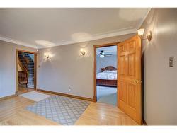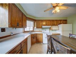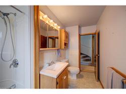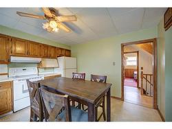 Updated and very well kept throughout. Large main floor family room addition. Great 4 bedroom home in Holmedale Neighbourhood. Close to parks, trail system and river. Main Floor with Living room, Eat-in Kitchen, large dining room, rear family room addition with gas fireplace. Main floor Primary bedroom with ensuite bathroom & walk-in closet. 2nd bedroom and main floor laundry. Upper level with 2 bedrooms. Fully finished basement complete with rec room with gas fireplace and office and 2pc washroom.