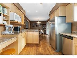 Quality built country property in the quaint, family friendly village of Onondaga in the County of Brant. Minutes away from Hamilton, Brantford and major highways, this 0.446 Acre property sits on a beautifully maintained lot with mature trees, a privacy wall of cedars covering most of the rear yard, and manicured gardens. This generous raised bungalow layout features 3 bedrooms on main floor, an updated eat in kitchen w/ sliding door leading to covered and screened in porch. The main level is completed by a warm inviting Living Room and a 4 piece bath. Downstairs boasts an inviting Family Room w/ electric fireplace, 3 piece bath with walk in shower, generous sized bonus room where the original garage was, and an abundance of storage. One of the stars of this show is the oversized 2+ Vehicle garage (added 1983) with a 220V outlet and is attached to the house and accessible from the inside and out - this is complemented by a generous workshop area to store just about anything. This home was custom built in 1976 and has been lovingly cared for by the same family since - pride of ownership is evidenced throughout.