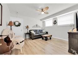 DRASTICALLY REDUCED TO SELL and CHEAPER THAN RENT!!! Welcome to this nicely updated, move-in ready, 1 bedroom unit with quality vinyl windows in every room, in an unbeatable and extremely desirable location, directly across from Spencer Smith Park, Spencer's at the Waterfront, and the Art Gallery of Burlington, and literally steps to the lake, trails, hospital, and downtown Burlington, and only a minute to the QEW, 403 and 407. This unit is on the first floor, has spacious principal rooms, including the living room, large eat-in kitchen, and primary bedroom, and has lots of quality updates throughout. Updates include ALL NEW in 2024: luxury wide plank vinyl flooring and 4 baseboards throughout, updated 4-piece bathroom with new vanity, countertop/sink, sink faucet, mirror, light fixtures, showerhead, and toilet, refreshed white kitchen cabinetry professionally painted inside and out, new fridge and stove, portable AC unit, and lighting, and freshly painted throughout. This unit shows 10+++. The complex has a nice community feel, is very quiet, well maintained, and has a great condo board. Complex amenities also include visitor parking, onsite laundry, and bike storage. The low monthly fee includes PROPERTY TAX, water, cable tv, unlimited high-speed internet, and storage locker. Optional parking space is $550/year. 2nd space may be available if needed. No dogs and no rentals/leasing. Don't wait and miss this opportunity for affordable living, in this very nicely updated unit, directly across from the lake and just about every other amenity! Welcome Home! All furniture negotiable and less than 2 years old. Quick closing available!
